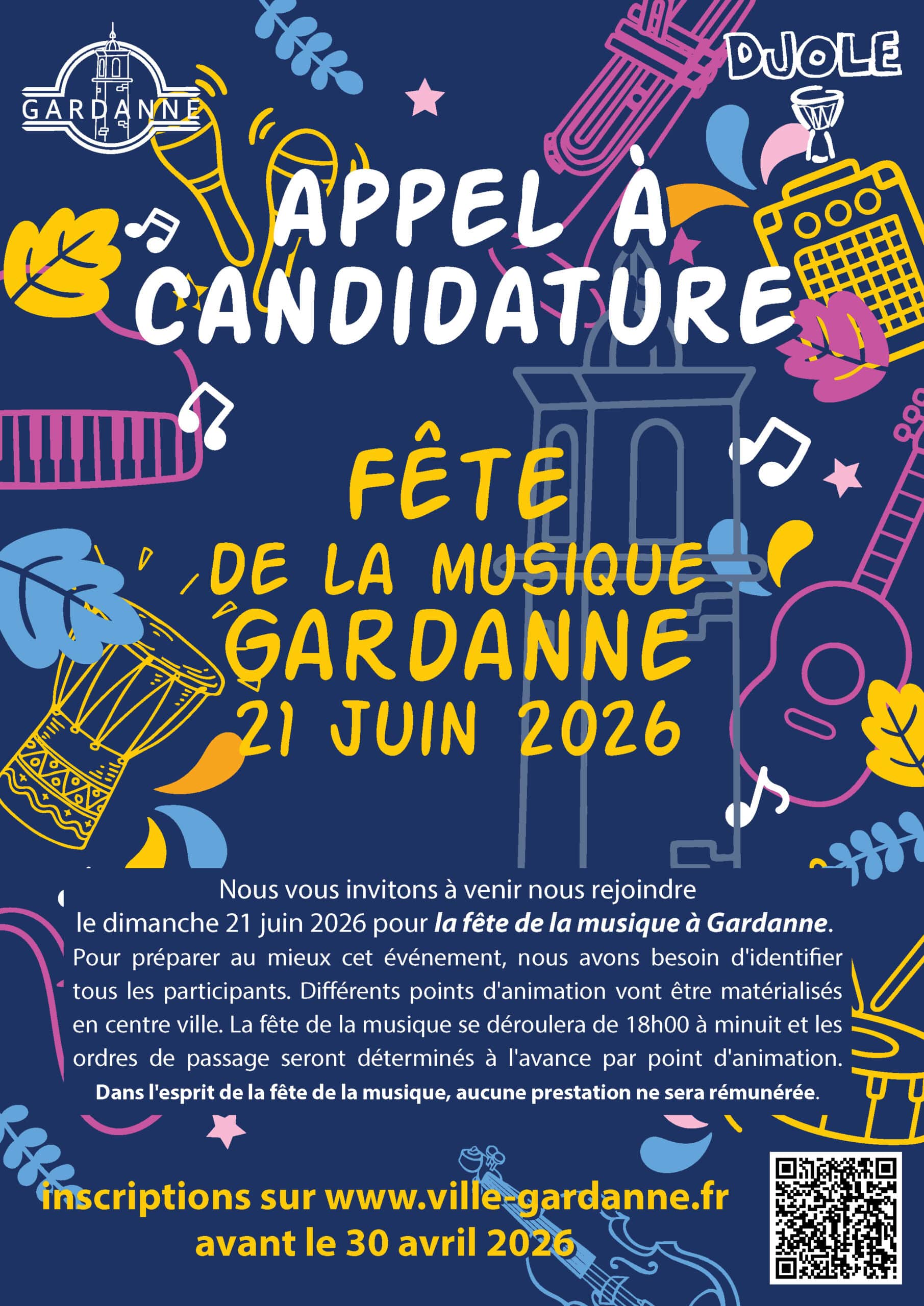 Cette année encore, la ville de Gardanne et l’association Djolé invitent tous les musiciens, amateurs ou professionnels, à participer à la Fête de la Musique, le dimanche 21 juin ! Que vous soyez en solo, en groupe, quel que soit votre style (rock, jazz, classique, rap, électro…) Venez faire vibrer Gardanne !